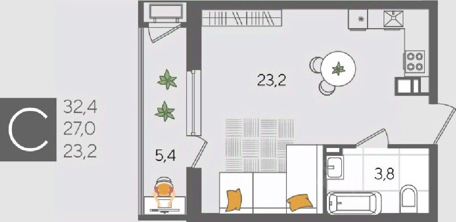 В продаже студия от застройщика! ЖК "Рекорд", г. Краснодар, Литер 5, общей площадью 32.4 кв.м., на 3 этаже.