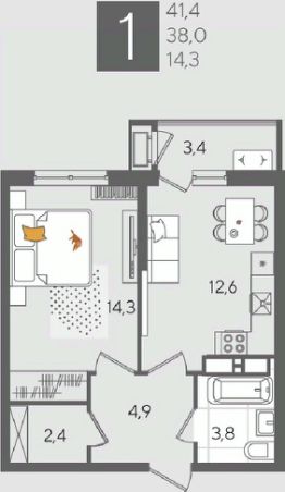 В продаже 1-комнатная квартира от застройщика! ЖК "Рекорд", г. Краснодар, Литер 5, общей площадью 41.4 кв.м., на 16 этаже.
