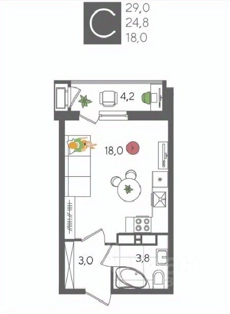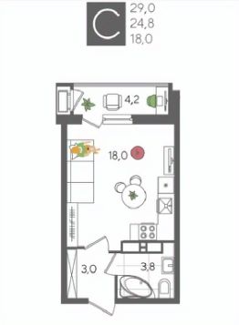 В продаже студия от застройщика! ЖК "Рекорд", г. Краснодар, Литер 5, общей площадью 29 кв.м., на 14 этаже.