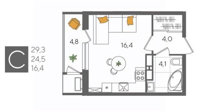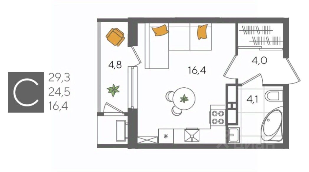 В продаже студия от застройщика! ЖК "Рекорд", г. Краснодар, Литер 5, общей площадью 29.3 кв.м., на 5 этаже.
