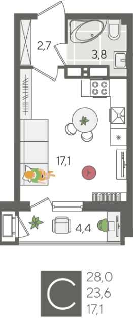 В продаже студия от застройщика! ЖК "Рекорд", г. Краснодар, Литер 2, общей площадью 28 кв.м., на 13 этаже.