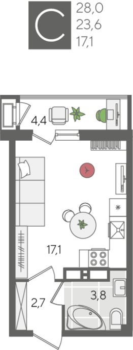 В продаже студия от застройщика! ЖК "Рекорд", г. Краснодар, Литер 2, общей площадью 28 кв.м., на 11 этаже.