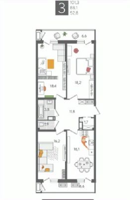 В продаже 3-комнатная квартира от застройщика! ЖК "Рекорд", г. Краснодар, Литер 2, общей площадью 101.3 кв.м., на 14 этаже.