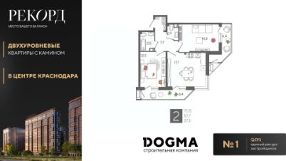 В продаже 2-комнатная квартира от застройщика! ЖК "Рекорд", г. Краснодар, Литер 2, общей площадью 70.5 кв.м., на 9 этаже.