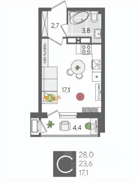 В продаже студия от застройщика! ЖК "Рекорд", г. Краснодар, Литер 2, общей площадью 28 кв.м., на 18 этаже.