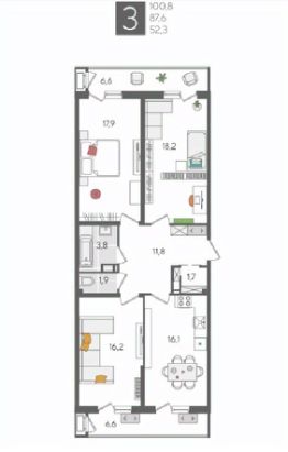 В продаже 3-комнатная квартира от застройщика! ЖК "Рекорд", г. Краснодар, Литер 1, общей площадью 100.8 кв.м., на 12 этаже.