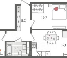 В продаже 2-комнатная квартира от застройщика! ЖК "Рекорд", г. Краснодар, Литер 1, общей площадью 68.7 кв.м., на 18 этаже.