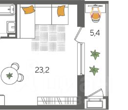 В продаже студия от застройщика! ЖК "Рекорд", г. Краснодар, Литер 1, общей площадью 32.4 кв.м., на 6 этаже.