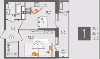 В продаже 1-комнатная квартира от застройщика! ЖК "Рекорд", г. Краснодар, Литер 1, общей площадью 39.2 кв.м., на 24 этаже.