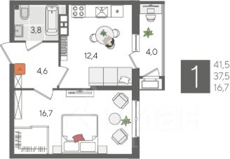 В продаже 1-комнатная квартира от застройщика! ЖК "Рекорд", г. Краснодар, Литер 1, общей площадью 41.5 кв.м., на 9 этаже.
