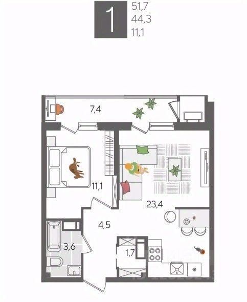 В продаже 1-комнатная квартира от застройщика! ЖК "Рекорд", г. Краснодар, Литер 1, общей площадью 51.7 кв.м., на 24 этаже.
