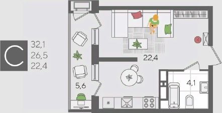 В продаже студия от застройщика! ЖК "Рекорд", г. Краснодар, Литер 3, общей площадью 32.1 кв.м., на 15 этаже.