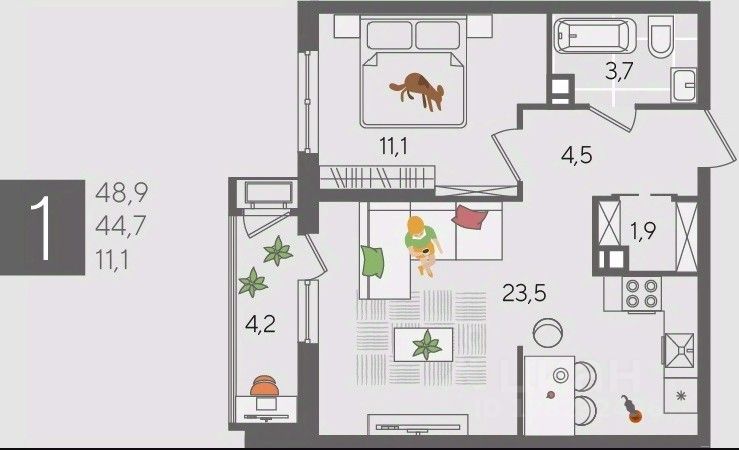 В продаже 1-комнатная квартира от застройщика! ЖК "Рекорд", г. Краснодар, Литер 6, общей площадью 48.9 кв.м., на 7 этаже.