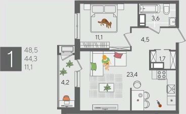 В продаже 1-комнатная квартира от застройщика! ЖК "Рекорд", г. Краснодар, Литер 6, общей площадью 48.5 кв.м., на 14 этаже.