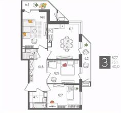 В продаже 3-комнатная квартира от застройщика! ЖК "Рекорд", г. Краснодар, Литер 6, общей площадью 87.7 кв.м., на 13 этаже.