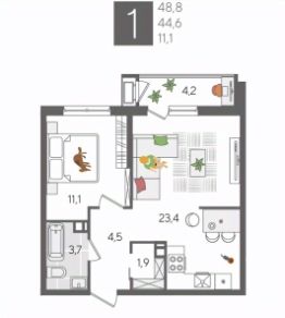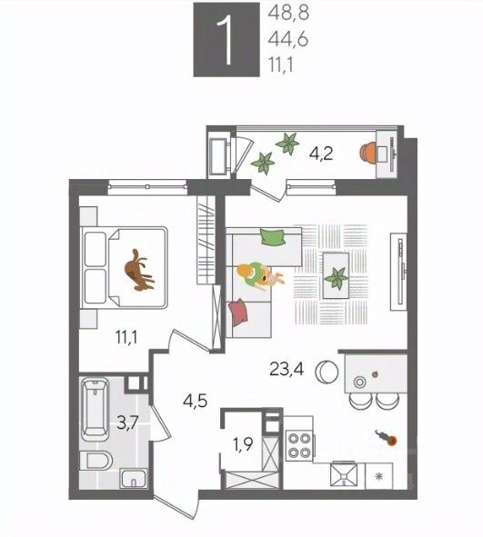 В продаже 1-комнатная квартира от застройщика! ЖК "Рекорд", г. Краснодар, Литер 6, общей площадью 48.8 кв.м., на 10 этаже.