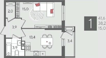 В продаже 1-комнатная квартира от застройщика! ЖК "Рекорд", г. Краснодар, Литер 6, общей площадью 41.6 кв.м., на 4 этаже.