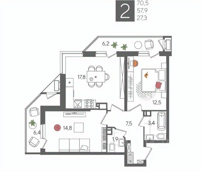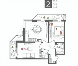 В продаже 2-комнатная квартира от застройщика! ЖК "Рекорд", г. Краснодар, Литер 6, общей площадью 70.5 кв.м., на 3 этаже.