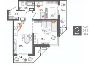В продаже 2-комнатная квартира от застройщика! ЖК "Рекорд", г. Краснодар, Литер 4, общей площадью 66.8 кв.м., на 20 этаже.