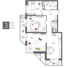 В продаже 3-комнатная квартира от застройщика! ЖК "Рекорд", г. Краснодар, Литер 4, общей площадью 86.8 кв.м., на 20 этаже.