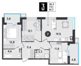 Срок сдачи: 2 кв. 2026, общей площадью 81.7 кв.м., на 3 этаже.