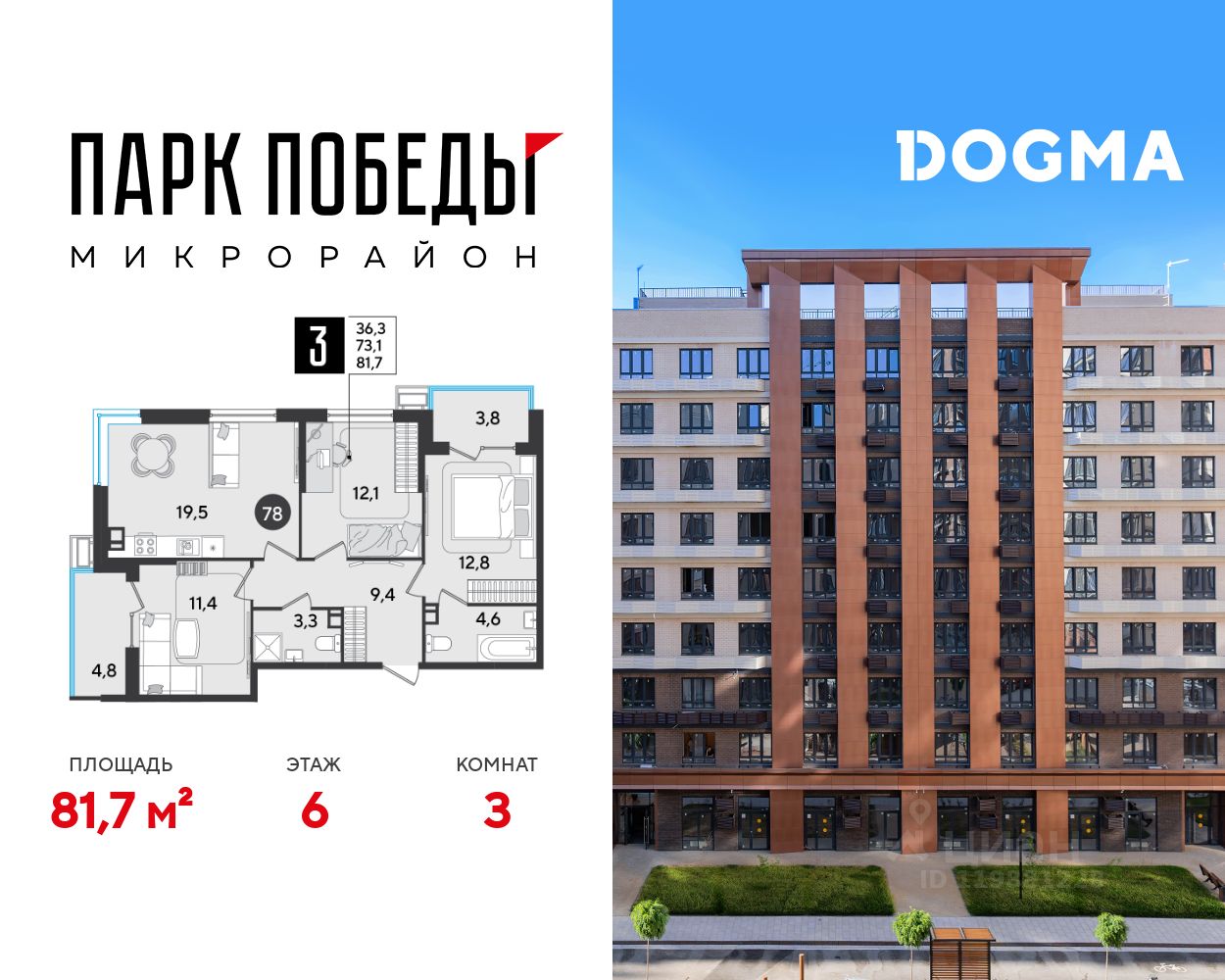 Срок сдачи: 2 кв. 2026, общей площадью 81.7 кв.м., на 6 этаже.