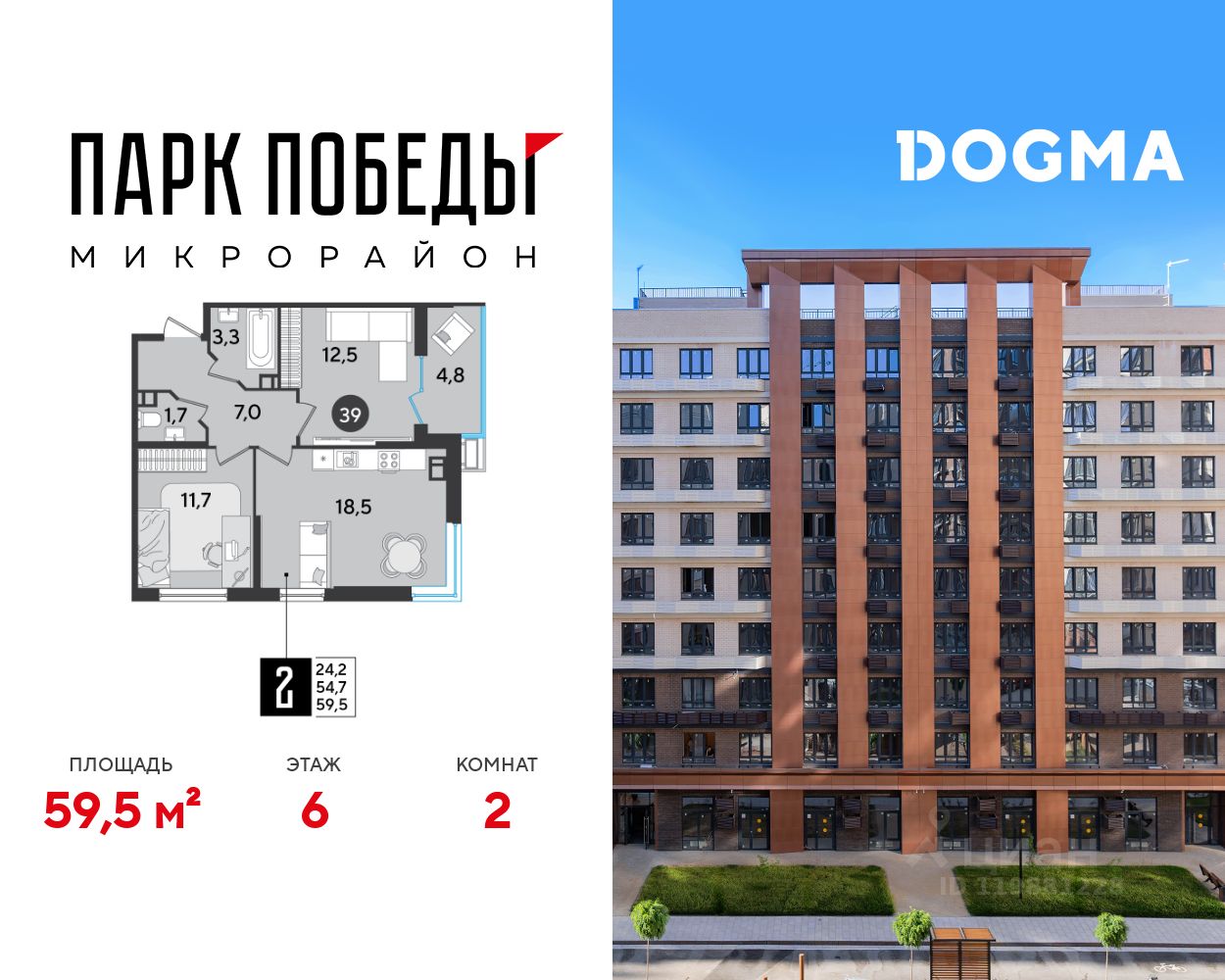 Срок сдачи: 2 кв. 2026, общей площадью 59.5 кв.м., на 6 этаже.