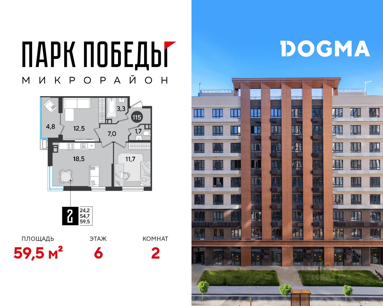 Срок сдачи: 2 кв. 2026, общей площадью 59.5 кв.м., на 6 этаже.