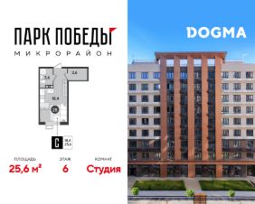 Срок сдачи: 2 кв. 2026, общей площадью 25.6 кв.м., на 6 этаже.