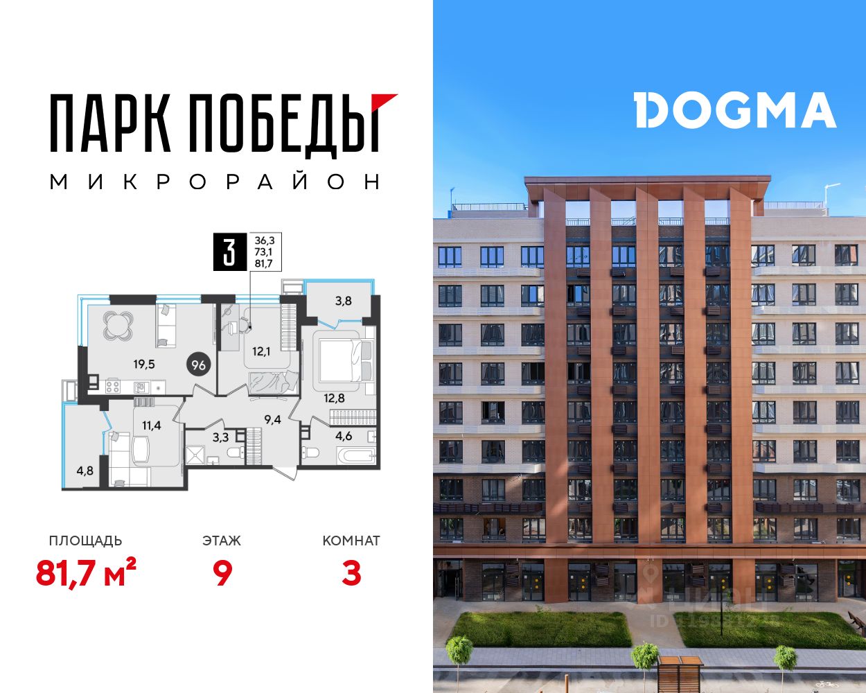 Срок сдачи: 2 кв. 2026, общей площадью 81.7 кв.м., на 9 этаже.