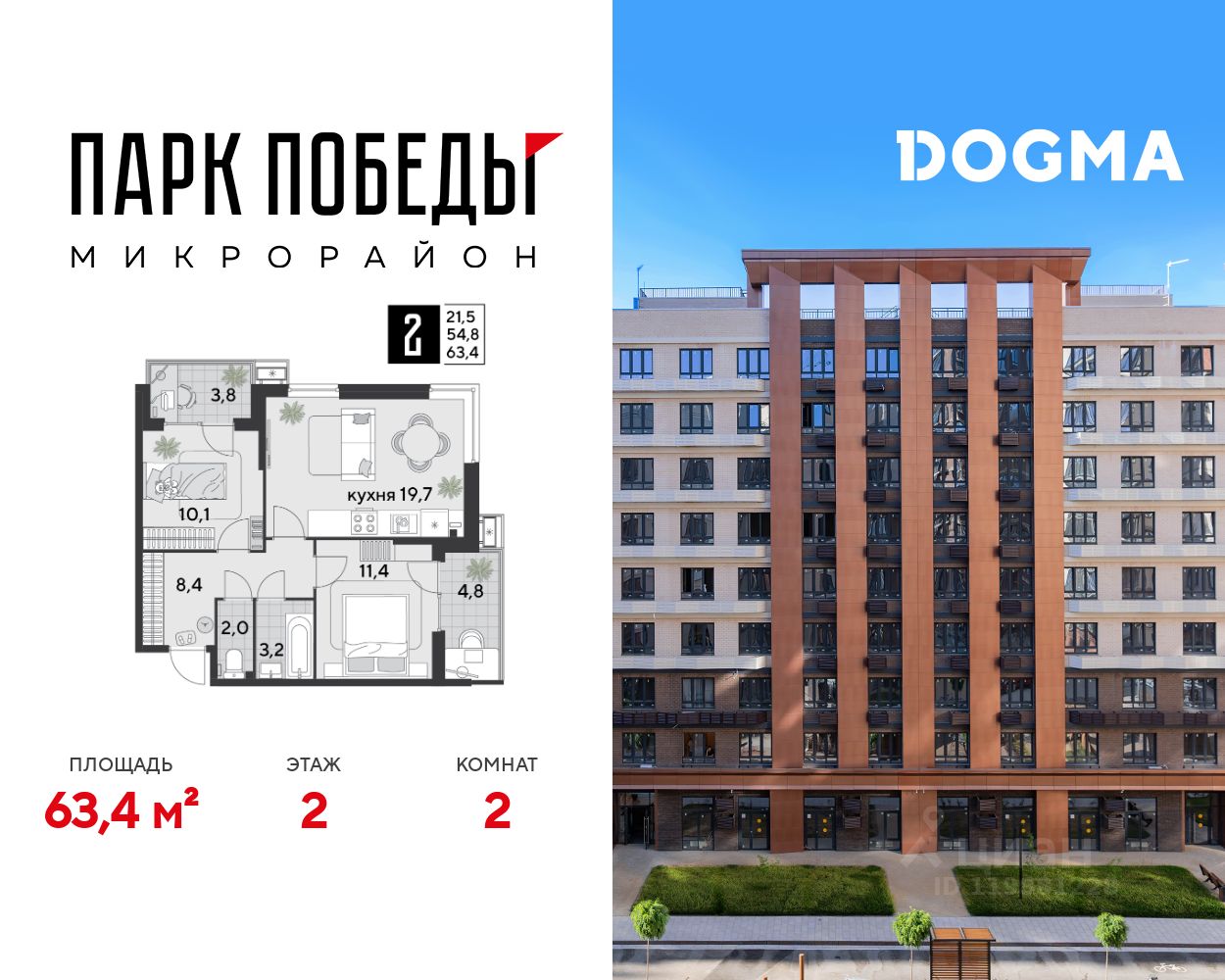 Срок сдачи: 4 кв. 2025, общей площадью 63.4 кв.м., на 2 этаже.