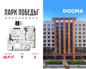 Срок сдачи: 2 кв. 2026, общей площадью 62.9 кв.м., на 9 этаже.