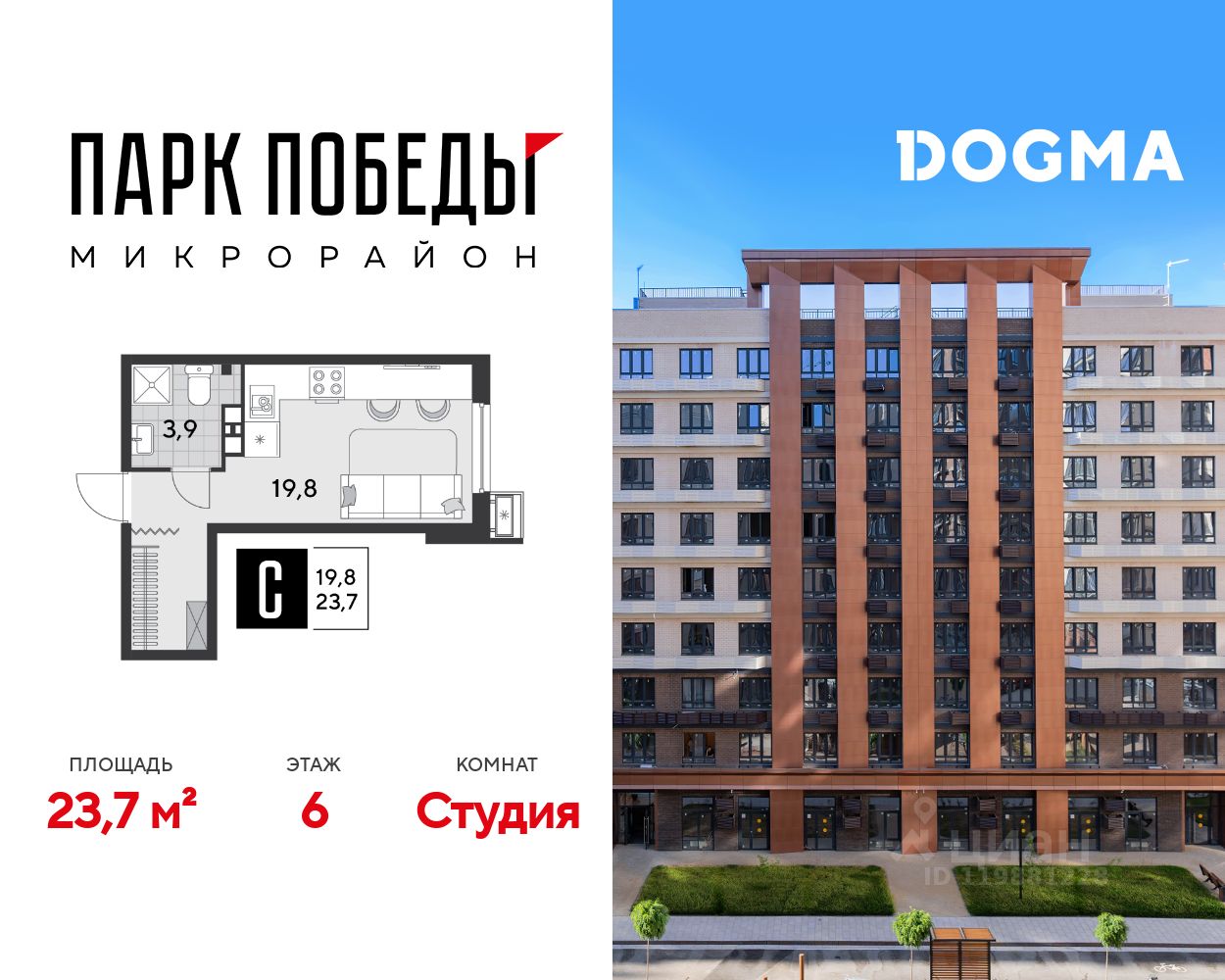 Срок сдачи: 2 кв. 2026, общей площадью 23.7 кв.м., на 6 этаже.
