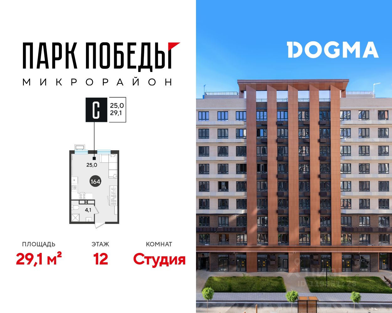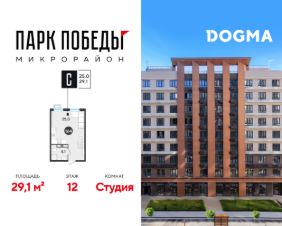 Срок сдачи: 2 кв. 2026, общей площадью 29.1 кв.м., на 12 этаже.