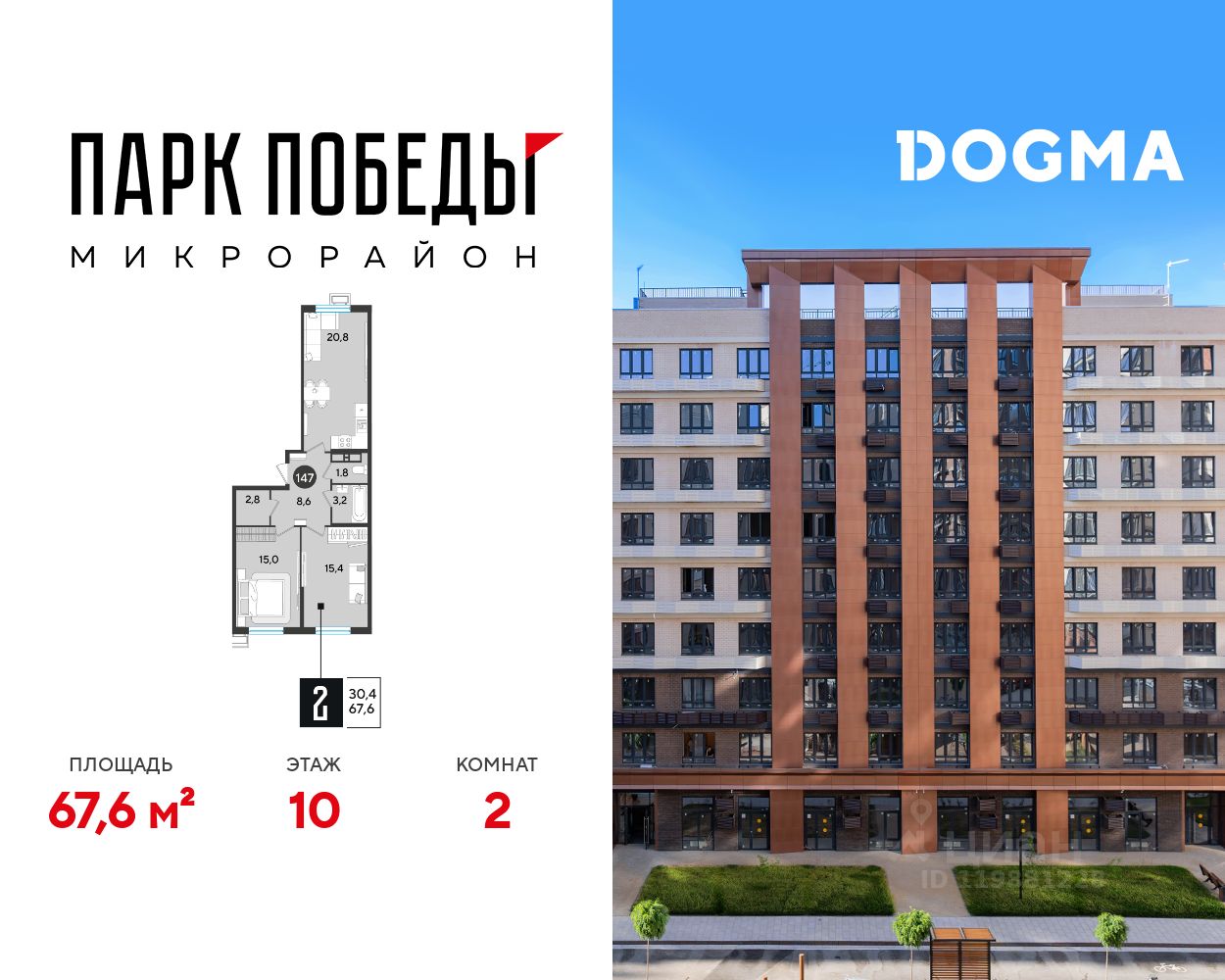 Срок сдачи: 2 кв. 2026, общей площадью 67.6 кв.м., на 10 этаже.