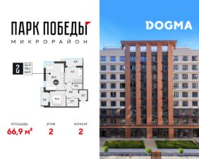 Срок сдачи: 2 кв. 2026, общей площадью 66.9 кв.м., на 2 этаже.