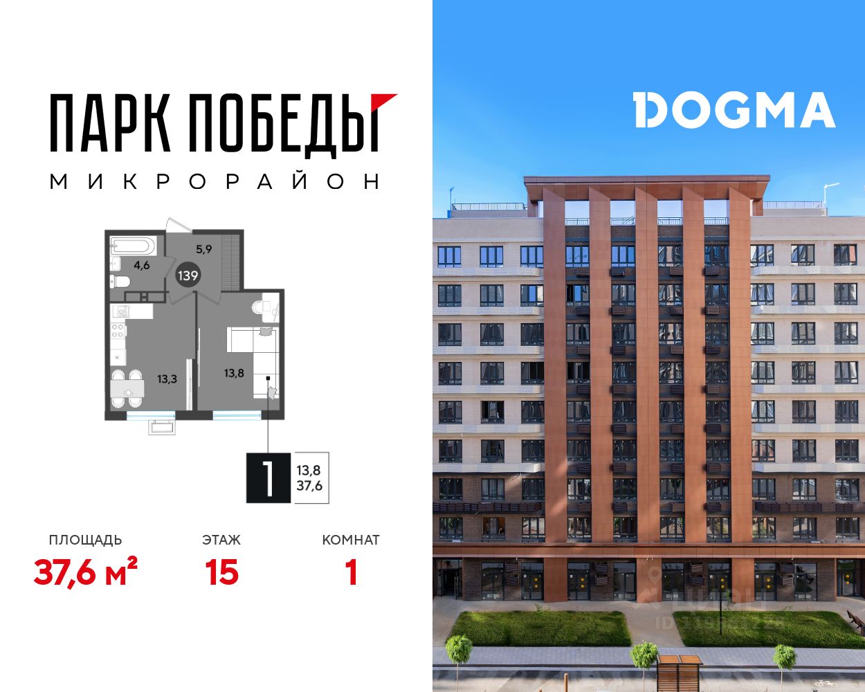 Срок сдачи: 2 кв. 2026, общей площадью 37.6 кв.м., на 15 этаже.