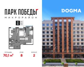 Срок сдачи: 2 кв. 2026, общей площадью 70.1 кв.м., на 8 этаже.