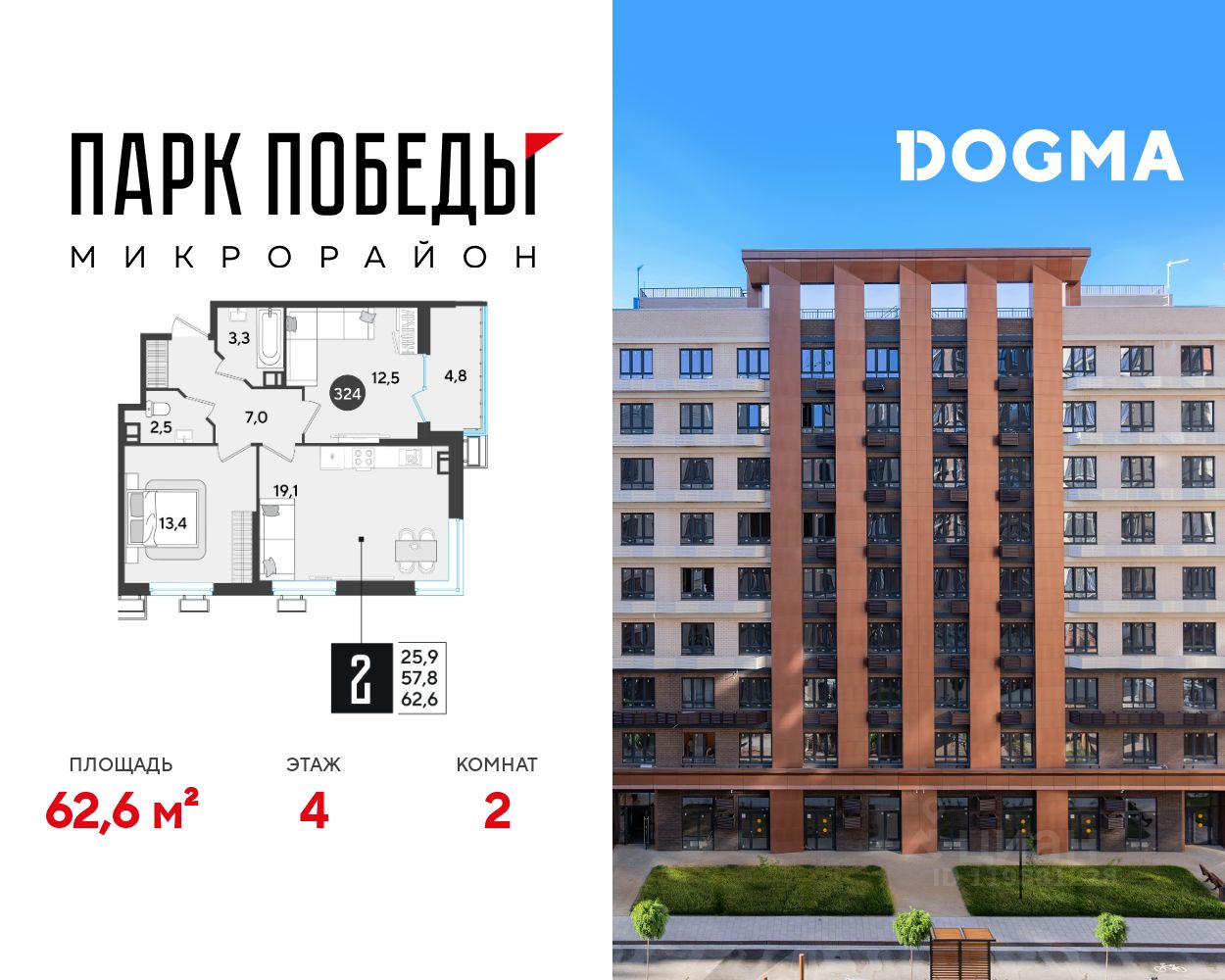 Срок сдачи: 2 кв. 2026, общей площадью 62.6 кв.м., на 4 этаже.