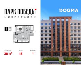 Срок сдачи: 2 кв. 2026, общей площадью 38 кв.м., на 15 этаже.