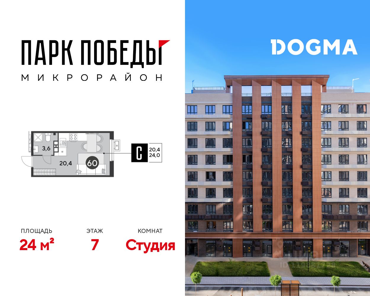 Срок сдачи: 2 кв. 2026, общей площадью 24 кв.м., на 7 этаже.