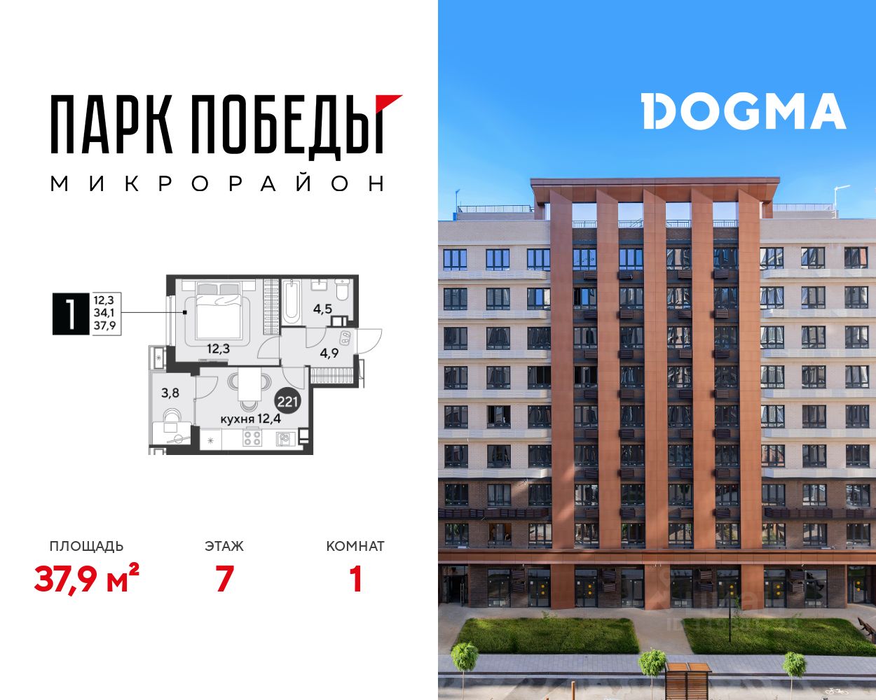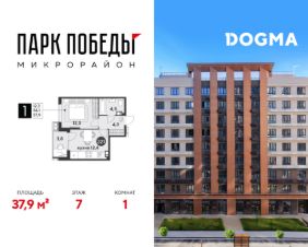 Срок сдачи: 2 кв. 2026, общей площадью 37.9 кв.м., на 7 этаже.