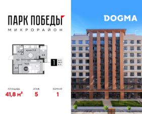 Срок сдачи: 2 кв. 2026, общей площадью 41.8 кв.м., на 5 этаже.