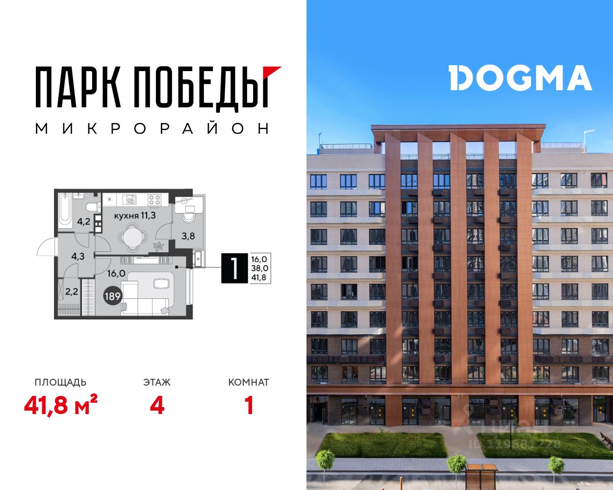 Срок сдачи: 2 кв. 2026, общей площадью 41.8 кв.м., на 4 этаже.
