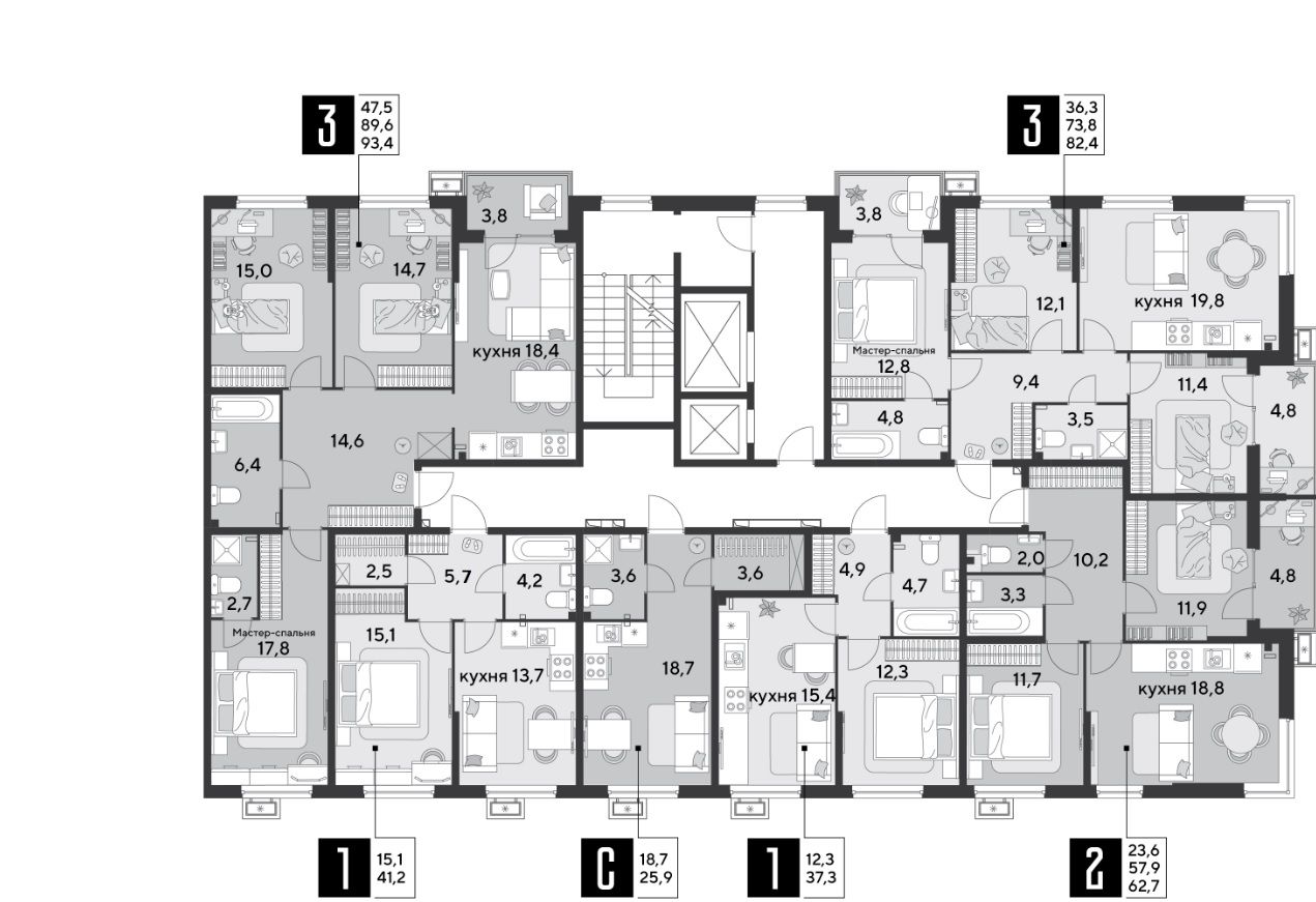 •Квартиры с мастер-спальнями и отдельными гардеробными