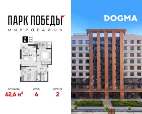 Срок сдачи: 2 кв. 2026, общей площадью 62.6 кв.м., на 6 этаже.