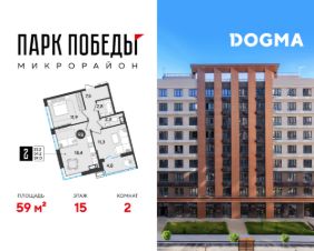 Срок сдачи: 2 кв. 2026, общей площадью 59 кв.м., на 15 этаже.