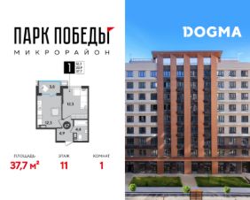 Срок сдачи: 2 кв. 2026, общей площадью 37.7 кв.м., на 11 этаже.