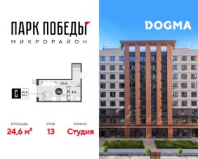 Срок сдачи: 2 кв. 2026, общей площадью 24.6 кв.м., на 13 этаже.