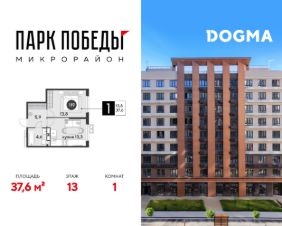 Срок сдачи: 2 кв. 2026, общей площадью 37.6 кв.м., на 13 этаже.
